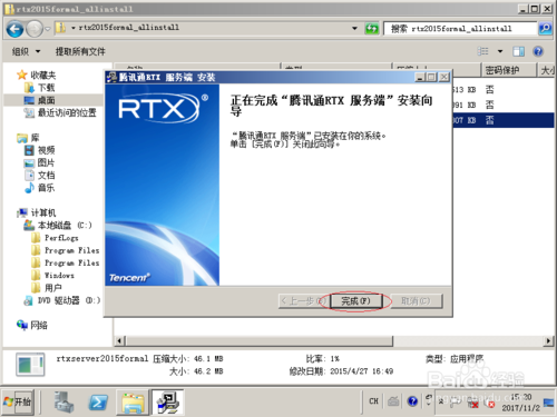 第七步 騰訊通RTX服務端已經(jīng)安裝到你的系統(tǒng),可以點擊"完成"。此時會關閉安裝向?qū)?,大功告成?br />