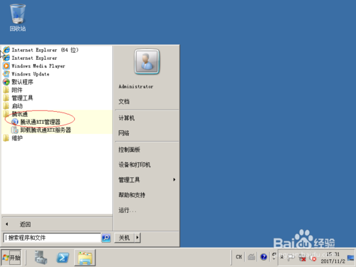 第八步 下面要開始配置RTX服務端了,點擊"開始→所有程序"、選擇"騰訊通→騰訊通RTX管理器"就可以。