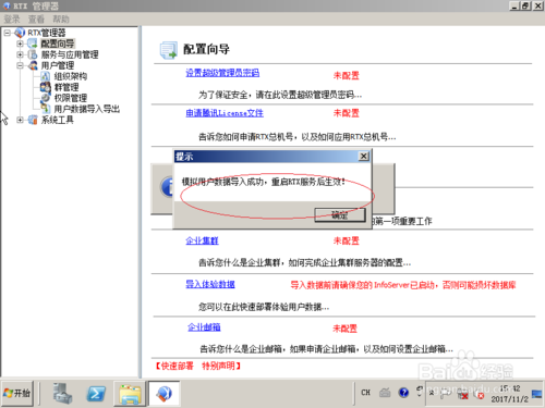 第十一步 模擬用戶數(shù)據(jù)導入成功,重啟RTX服務器才會生效。"快速體驗RTX的強大功能"設置完成。