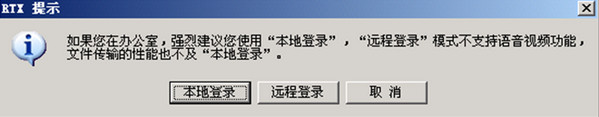 4. 如果您在局域網(wǎng)內(nèi)使用“遠程登錄”時,將彈出善意提示窗口,提醒您是在局域內(nèi)部,是否使用遠程登錄。如圖1.8所示。