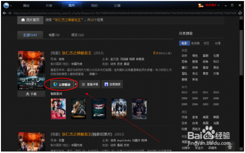 4、把鼠標移動到電影名稱上時,會顯示一個下載按鈕,點擊下載按鈕,啟動迅雷建立下載任務。