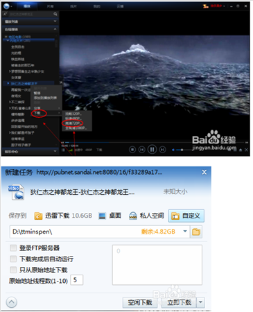 3、在播放列表中,找到電影目錄,右擊在顯示的菜單中選擇下載的清晰版本,點擊后會啟動電腦上的迅雷進行下載。