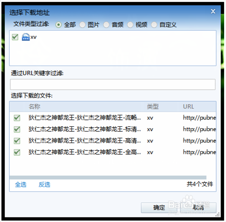 5、下載任務中默認選擇4個版本的電影文件,取消不需要的電影清晰版本。