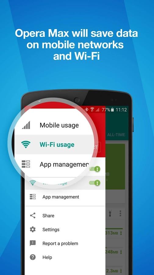 Opera Max 可節(jié)省流量,延長(zhǎng)您的流量套餐使用時(shí)間,讓您對(duì)手機(jī)的流量消耗擁有前所未有的掌控。此流量管理與流量節(jié)省應(yīng)用程序可將 3G / 4G / LTE 和 Wi-Fi 的流量使用減少 50%。Opera Max 具有流量節(jié)省功能,可在移動(dòng)網(wǎng)絡(luò)和 Wi-Fi 網(wǎng)絡(luò)中無(wú)損壓縮移您喜愛(ài)的應(yīng)用程序和網(wǎng)站上的視頻、照片和媒體等內(nèi)容。Opera Max 還能通過(guò)阻止在您不知情的情況下在后臺(tái)運(yùn)行的任何應(yīng)用程序來(lái)節(jié)省電量和流量。您還可以將它用作 Wi-Fi 管理器,從而在連接 Wi-Fi 時(shí)更好地控制后臺(tái)應(yīng)用程序的行為。【軟件功能】