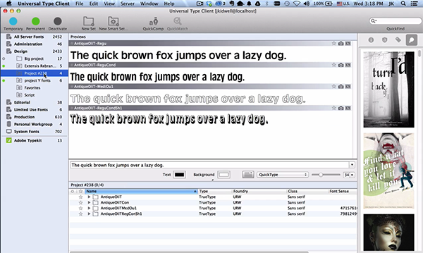 這是一款Mac平臺的專業(yè)的字體服務(wù)器工具,幫助您管理,組織和分發(fā)您的整個(gè)字體庫。這是是完美的專業(yè)級服務(wù)器字體管理系統(tǒng),適用于設(shè)計(jì)、印刷和內(nèi)部設(shè)計(jì)團(tuán)隊(duì)。有了Plug-in插件支持Adobe CS4& CS5(InDesign , Illustrator,Photoshop和InCopy中)和自動(dòng)激活XTensions為QuarkXPress,確切的字體匹配從來沒有更準(zhǔn)確的字體感,直觀的字體匹配技術(shù)。