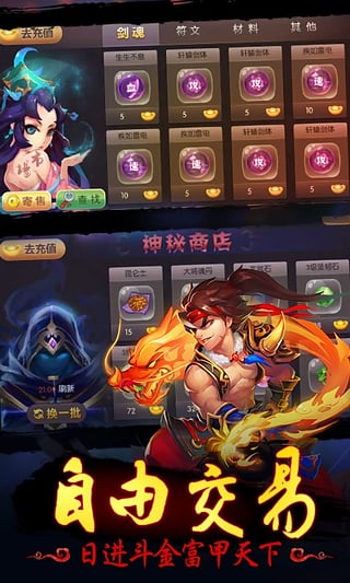 開放的交易系統(tǒng),高福利,高掉落,不花錢也能玩得好,游戲賺錢不是夢。