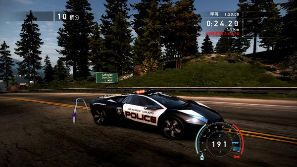 對(duì)于一個(gè)游戲新手來說。賽車游戲看起來是最容易上手的,“就像公園里的碰碰車一樣吧”大家常這么想。因此真正易上手的競(jìng)速,不應(yīng)再駕馭車輛的難度上有過多的障礙。并且在賽道與賽車的搭配上,也盡力做到賽車不被賽道折騰——?jiǎng)硬粍?dòng)就去減速沙坑里中場(chǎng)休息。Criterion Games不僅把新一代極品飛車的賽道鋪設(shè)的寬闊平直,更是為兩側(cè)布上勝景。在如畫的風(fēng)景中與風(fēng)同行,又有哪一個(gè)玩家會(huì)拒絕呢?可是如果真正沒有了挑戰(zhàn)整個(gè)競(jìng)速游戲的駕駛過程就會(huì)活像著名游戲作品——沙漠巴士,并且很早時(shí)候游戲設(shè)計(jì)師們就發(fā)現(xiàn)了這點(diǎn),所以我們看到上世紀(jì)80年代中類似縱版射擊的競(jìng)速游戲Road Fighter都通過制造復(fù)雜路況的方式來打造一個(gè)不需要依靠駕駛技術(shù)而依靠反應(yīng)速度來取勝的游戲規(guī)則?!稑O品飛車熱力追蹤》系列中警車的出沒更是將這種反應(yīng)考驗(yàn)提升了一個(gè)境界,玩家不僅需要靠反應(yīng)還需要靠盤算以及一些外加的運(yùn)氣因素。