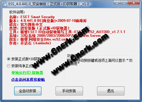 ESET Smart Security V4.0.441 雙安裝官方簡(jiǎn)體中文版 1、本版本內(nèi)置2009年7月10日的病毒庫(kù)。