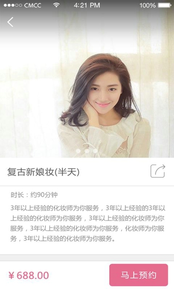 1.【選擇豐富 一覽所需】海量妝容作品任你挑選,各種專業(yè)化妝師供你隨時預約。讓你只在俏貓便可第一時間搶先遍覽!
