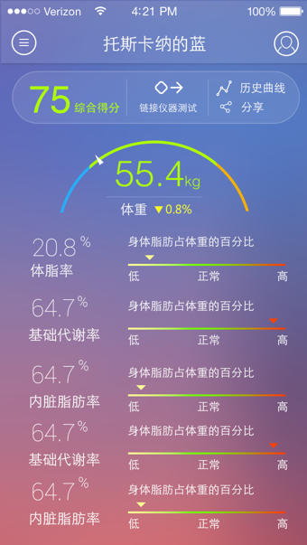 bodivis app是一款配合bodivis健康秤和運動手環(huán)使用的健康生活管理應(yīng)用,通過bodivis app您可以清楚的知道身體各種指標(biāo)情況,了解您的每日行走里程、步數(shù)等運動情況。軟件還會評測分析結(jié)果為您定制合理的運動及營養(yǎng)計劃,指導(dǎo)您科學(xué)鍛煉、合理用餐、健康減脂!