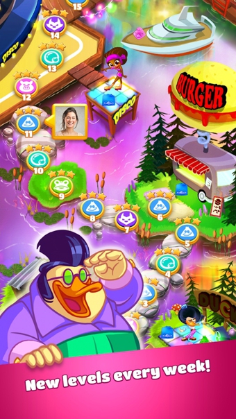 簡單,容易上癮的益智游戲!比賽和豐富多彩的連接鴨子迪斯科照亮舞池!很多瘋狂,跳舞迪斯科鴨子有特殊技能,收集和掌握!