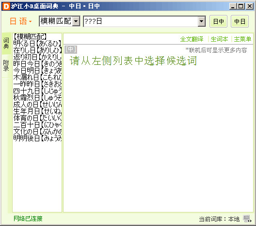 2、單擊滬江小d日語詞典的【中日】按鈕后按回車鍵即可。