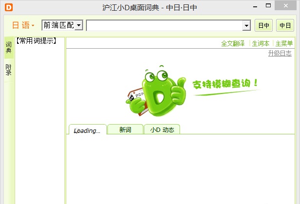 滬江小D日語詞典是一款中日日中桌面詞典軟件,充分考慮中國人的使用習(xí)慣,為日語學(xué)習(xí)者度身定制。該詞典擁有海量的日語詞庫,并支持屏幕取詞、真人發(fā)音以及TTS朗讀等功能。此外,它還集成了網(wǎng)絡(luò)詞庫和網(wǎng)絡(luò)生詞本,并提供了專業(yè)的日文翻譯、強(qiáng)大的模糊查詢、及優(yōu)秀的日語在線翻譯等服務(wù)。滬江小D日語詞典涵蓋所有日漢翻譯功能,囊括日語單詞的發(fā)音,解釋,參考例句等內(nèi)容,是極具人氣的在線詞典,歡迎下載使用!