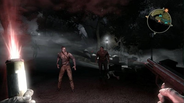 可問題是,火是唯一一個可以徹底消滅敵人的方法 (很難理解他的名字叫“人類”),開始還覺得新鮮,可馬上就乏味了。盡管,這種方法有很多種演繹手段 – 扔燃燒彈,炸汽車,使用臨時的發(fā)火道具,用著火的家具砸怪物 – 還有一把沒用的槍 (整個游戲你就只有一把手槍) 。想用槍,除非你把一種可燃燒的液體灌進子彈制造一種 "火焰子彈" ,即便是這樣,你也必須很準的直接打中怪物身上的“裂縫”才能殺死怪物,就是打他們身上發(fā)光發(fā)熱的疤痕。大多數(shù)時候,你會發(fā)現(xiàn)你得到的爆炸物品非常少,這就意味著在鬼屋魔影5里面,你殺死怪物能用的最多的方法就是拿著火的椅子往怪物身上砸。我的媽呀。