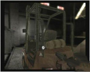下車來到一公園樣的地方,右走路面會坍塌不能通行,左走不遠會看見一兩裝有小汽車的大貨車傾斜在那里,用槍打貨車后面的紅色把手小汽車會掉下來,小車會自行溜走一段距離。