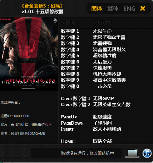 點(diǎn)擊簡(jiǎn)體、繁體、English,可以切換語(yǔ)言 (切換語(yǔ)言后修改器將把該語(yǔ)言設(shè)置為默認(rèn)語(yǔ)言)點(diǎn)擊音樂(lè)圖標(biāo),可以開(kāi)啟/關(guān)閉音樂(lè),游戲開(kāi)始后會(huì)自動(dòng)關(guān)閉音樂(lè)。