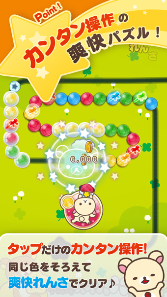 LINE輕松熊LINE Rilakkuma是一個(gè)可愛(ài)的益智游戲,點(diǎn)擊對(duì)準(zhǔn)相同顏色的小球,直到全部消除,通過(guò)連擊獲得高分。