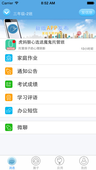 應(yīng)用現(xiàn)代通信、網(wǎng)絡(luò)技術(shù)增進(jìn)教師和家長(zhǎng)的信息互通,構(gòu)筑資訊互通、資源共享的協(xié)同教育網(wǎng)絡(luò),推動(dòng)平安教育、促進(jìn)素質(zhì)教育,為學(xué)生的健康成長(zhǎng)提供安全、良好的環(huán)境。適用于上海所有中小學(xué)及幼兒園的全體用戶,適用于需要通過(guò)短信架起學(xué)校與家長(zhǎng)之間溝通橋梁的用戶。通過(guò)“校訊通”短信業(yè)務(wù),家長(zhǎng)可隨時(shí)獲知子女在校表現(xiàn)、作業(yè)情況、考試成績(jī)、教師點(diǎn)評(píng)等個(gè)性化信息,并可隨時(shí)隨地與教師進(jìn)行無(wú)障礙交流;學(xué)??赏ㄟ^(guò)“校訊通”應(yīng)用解決方案,移動(dòng)短信、網(wǎng)絡(luò)平臺(tái)將校務(wù)通知、收費(fèi)信息、家長(zhǎng)約談、臨時(shí)公告等信息及時(shí)遞送給家長(zhǎng)。
