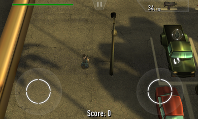 游戲中玩家會(huì)出現(xiàn)在一個(gè)場(chǎng)景中,四面八方都有可能出現(xiàn)敵人,你只需要靈活的走位和運(yùn)用場(chǎng)景中的各種物品進(jìn)行卡位,完成殺敵,本作的操作界面非常簡(jiǎn)單,雙搖桿的界面一個(gè)控制行動(dòng)的方向一個(gè)控制射擊方向分工明確,玩家完全可以流暢的操作!