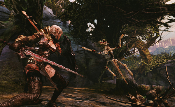 本作主角Caddoc是美式奇幻作品中典型的壯漢形象,而女主角Elara也是經(jīng)典的性感剽悍女戰(zhàn)士形象。Elara是遠(yuǎn)距離作戰(zhàn)專家,善于使用弓箭。Caddoc自然是近距離作戰(zhàn)的高手,將會(huì)用他的劍將敵人肢解。本作將帶來如《戰(zhàn)神》般暢快淋漓的戰(zhàn)斗,與場(chǎng)景的互動(dòng)程度很高,比如推倒一個(gè)大石柱,引發(fā)連鎖反應(yīng),使巨石堆滾落將敵人掩埋。同時(shí)本作也會(huì)插入電影般的過場(chǎng)動(dòng)畫。【游戲特點(diǎn)】