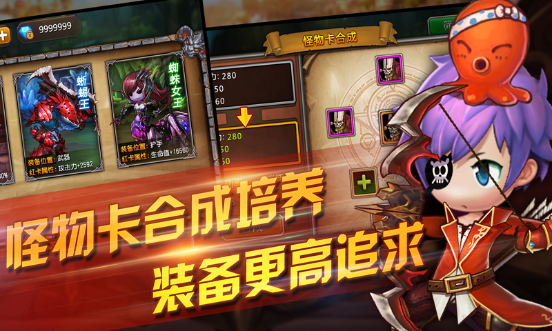 怪物卡依然是游戲中的一大亮點,通過鑲嵌怪物卡可以增加裝備的屬性增強戰(zhàn)斗力,低品質(zhì)的怪物卡可以合成高品質(zhì)的怪物卡,抽取怪物魂匣,更有機會獲得戰(zhàn)斗力爆表的BOSS卡!快來挑戰(zhàn)你的運氣吧!