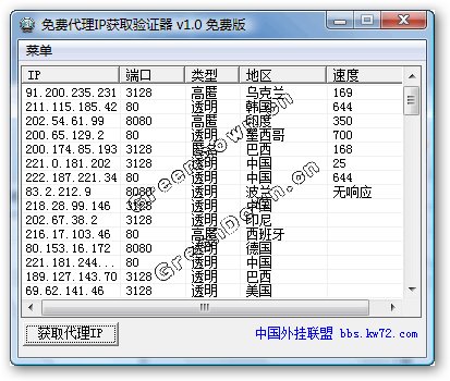免費取得最新代理IP,同時自動驗證IP速度(數字越小,速度越快)。由于是第一版,功能上可能不太完善