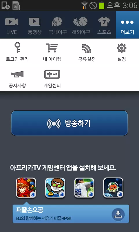 Afreeca電視,體育賽事,游戲節(jié)目,談話節(jié)目等具有多種地面和有線廣播實時功能