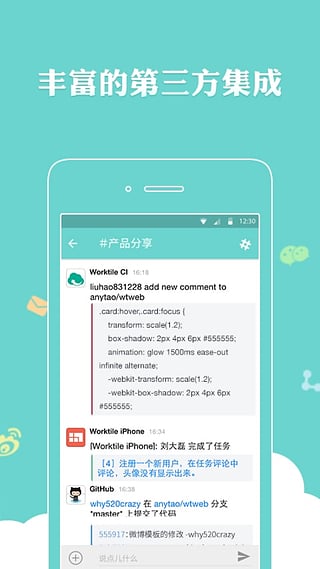 紛云作為一個團(tuán)隊(duì)即時溝通的工具,可以創(chuàng)建頻道、群組、私聊,這還不夠,最強(qiáng)大的地方就是可以整合其他的很多服務(wù),比如 github、微博、微信公眾號……這是什么意思呢?就是,比如你的工程師在 github上 提交了代碼,微博上有人 @你,微信公眾號上有人私信你,你就可以在紛云上收到消息!不單如此,未來還會整合更多的牛X服務(wù),這都不是加特效能做出來的。