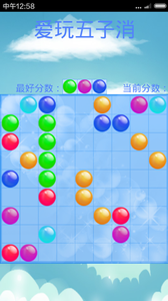 愛玩五子消是一款消除類游戲,會隨機(jī)出現(xiàn)三種顏色的珠子,但是不同顏色的珠子會相互攔截,只有同一顏色的珠子同一直線,斜對角線也可以,達(dá)到五顆就可以消除,移動的步數(shù)越多,阻礙越大!