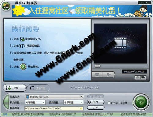 超級AVI轉(zhuǎn)換器是一款功能強(qiáng)大,界面友好的AVI視頻轉(zhuǎn)換及編輯工具,擁有它,您可以將幾乎所有流行的視頻格式,如:RM、RMVB、VOB、DAT、VCD、DVD、SVCD、ASF、MOV、QT、MPEG、WMV、MP4、3GP、DivX、XviD、AVI等視頻文件,編輯轉(zhuǎn)換為MP4機(jī)、手機(jī)或碟機(jī)上所支持的AVI視頻格式。超級AVI轉(zhuǎn)換器不僅僅是轉(zhuǎn)換器,它同時提供視頻編輯功能,讓你的視頻獨一無二,特色十足。在AVI轉(zhuǎn)換設(shè)置中,您可以對輸入的視頻文件進(jìn)行可視化編輯,例如,裁剪視頻,截取部分視頻轉(zhuǎn)換,不同視頻合并成一個文件輸出,調(diào)節(jié)視頻亮度、對比度等