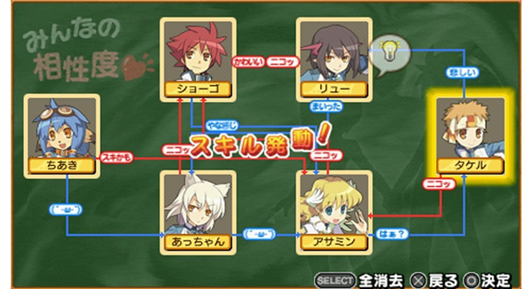 玩家可以給當(dāng)前小隊(duì)的成員之間的關(guān)系進(jìn)行調(diào)整,喜歡還是討厭,全都由玩家隨心所欲地搭配。通過各個(gè)成員之間相性的調(diào)整,各個(gè)成員之間還能發(fā)動(dòng)特定的協(xié)力技。協(xié)力技的種類也非常多,效果也很顯著。該怎么配出這些強(qiáng)大的協(xié)力技,各位還是多多嘗試吧~這個(gè)系統(tǒng)還是非常有趣的,協(xié)力技的發(fā)動(dòng)還與性別有關(guān),互相喜歡的兩個(gè)人同為男性或者同為女性,或者一男一女,可以發(fā)動(dòng)的協(xié)力技也不同,各位自己探索吧。