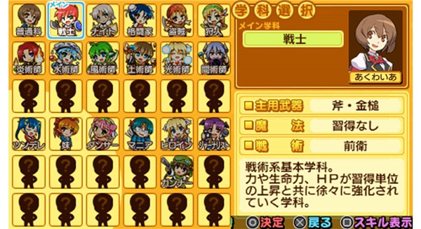 本作中共有40多種職業(yè),可謂非常豐富。這些職業(yè)大致可以分為4個(gè)大類:基本學(xué)科、種族專用學(xué)科、特化學(xué)科和上級(jí)學(xué)科。