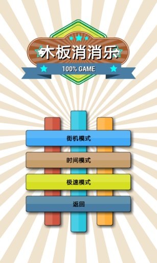 木板消消樂(lè)本游戲通過(guò)不停消除最上面的木板以獲取分?jǐn)?shù),游戲配有優(yōu)美的音樂(lè)效果,讓你玩的開(kāi)心,游戲中一共有3個(gè)模式:街機(jī)模式,時(shí)間模式,極速模式極速模式有時(shí)間限定,不快點(diǎn)找出頂層木板就會(huì)爆炸哦。