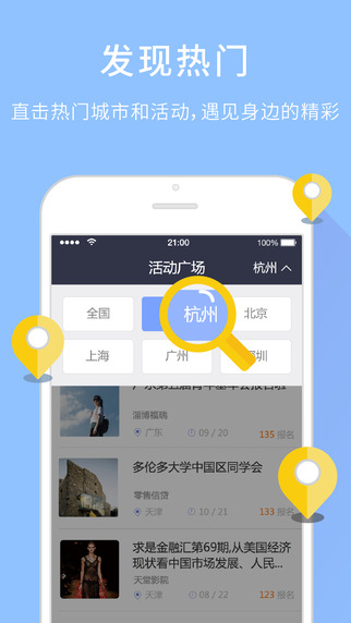 網(wǎng)羅全國海量活動,熱門城市活動直通車,打通線上線下,驚喜就在身邊。