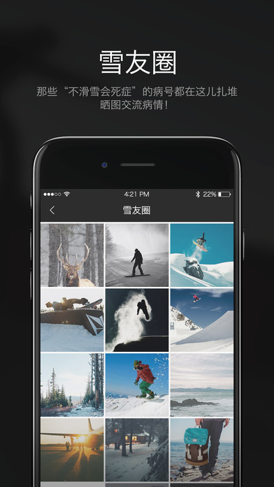 一站式解決雪友滑雪需求的多功能社區(qū)服務(wù)平臺(tái),AppStore強(qiáng)力推薦!滑雪達(dá)人各路大神5星好評(píng),全世界滑雪愛(ài)好者的的曬圖交友樂(lè)園。
