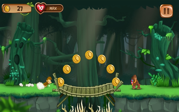 猴子快跑香蕉島是一款休閑益智類的跑酷小游戲。該游戲非常玩法非常簡單,玩家需要幫助小猴子在奔跑的途中,安全有效的躲避敵人和障礙物,努力收集到更多的香蕉。