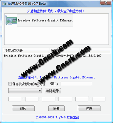 最大特點(diǎn)是修改MAC后即時(shí)生效。不用重啟電腦。