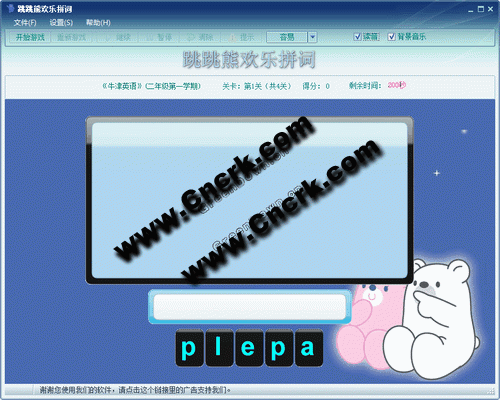 跳跳熊歡樂拼詞,在快樂中記單詞,隨機排列給出一個單詞的字母,通過這些字母組合出單詞,這樣就加深了對單詞的拼寫記憶