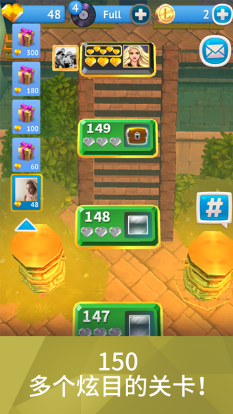 Angry Birds 創(chuàng)作團(tuán)隊(duì),攜手流行樂巨星 Shakira,推出全新益智游戲,有流光溢彩的珠寶,個(gè)個(gè)都有獨(dú)特的寓意及能力;有 Shakira 親手選定的異域現(xiàn)場,還有超級引人入勝的俄羅斯方塊類游戲方式!伴她全球冒險(xiǎn),一路落下、連線五光十色的珠寶,煥發(fā)熠熠生輝的魅力,連成長長鏈子,贏得高高積分。游戲上手簡單!實(shí)際上手之后你會發(fā)現(xiàn),《Love Rocks》中消除的節(jié)奏和之前絕大部分的傳統(tǒng)三消、或者轉(zhuǎn)珠消除游戲都不同。由于游戲分成回合,在回合中又有步數(shù),因此可以以回合作為整體去思考策略。游戲中的難度進(jìn)階有多種形式:除了我們常見的,以《糖果傳奇》為代表的“打碎冰塊”、“繞開障礙”或是“解鎖箱子”這類已經(jīng)被業(yè)界廣泛采用的難度障礙之外,游戲中還包括石頭本身的難度障礙。隨著游戲進(jìn)程,作為消除元素的石頭會增添一個(gè)屬性。比如說黃色的石頭上面有星型的圖案,此時(shí)它就既可以和黃色的石頭連接,也可以與帶有星星圖案的石頭連接。但你不要以為這樣可以讓消除變得更加簡單,事實(shí)上這增加了游戲的難度。因?yàn)樽罱K只會依照某一個(gè)特定的屬性“釣起”石頭。舉例來說,“釣起”連接在一起的黃色的心型石頭和紅色的心形石頭,最后會剩下黃色、紅色兩塊無圖案石頭。至于相同圖案的石頭連接也是一樣。在某些關(guān)卡中,石頭會在每回合開始時(shí)從下方升起。因此將格子中的石頭“干凈徹底”地消除成為了關(guān)鍵,而因?yàn)椴煌^上的圖案所造成的“殘留”將會造成影響。