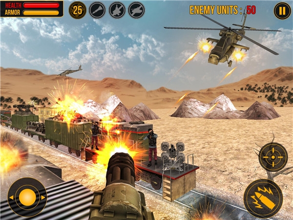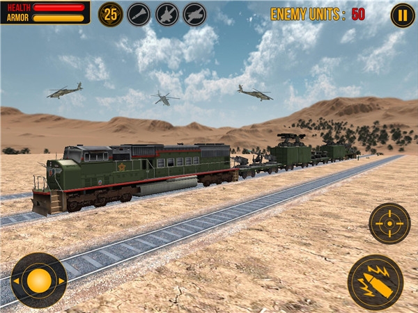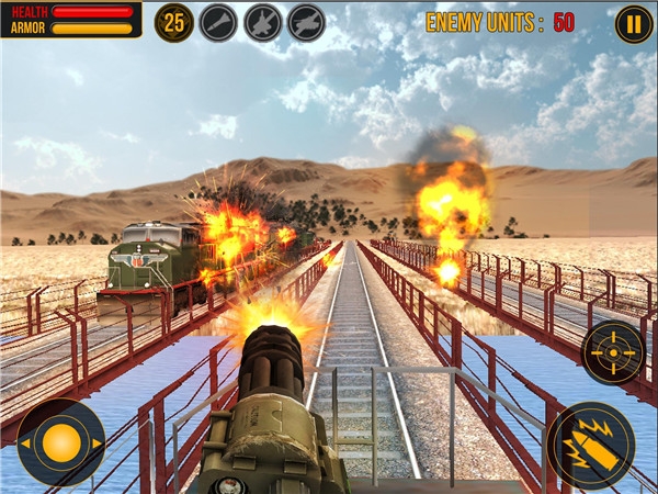 子彈頭列車正在已抓獲的黑色行動(dòng)組織境內(nèi)緩行。憤怒的敵人已經(jīng)橫跨鐵軌并切斷了軍隊(duì)運(yùn)送的武器和物資??靵砑尤胛覀?,完成現(xiàn)代軍事攻擊任務(wù)吧!