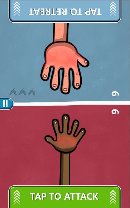 《打手板 Red Hands》是一款雙人類的休閑游戲。游戲需要兩個(gè)玩家一起進(jìn)行,規(guī)則很簡單看哪位玩家先打到對方的手就可以得到分?jǐn)?shù)。游戲非常測試玩家的反應(yīng)能力和速度,如果你喜歡玩兩個(gè)玩家的游戲,這是你的最佳選擇!
