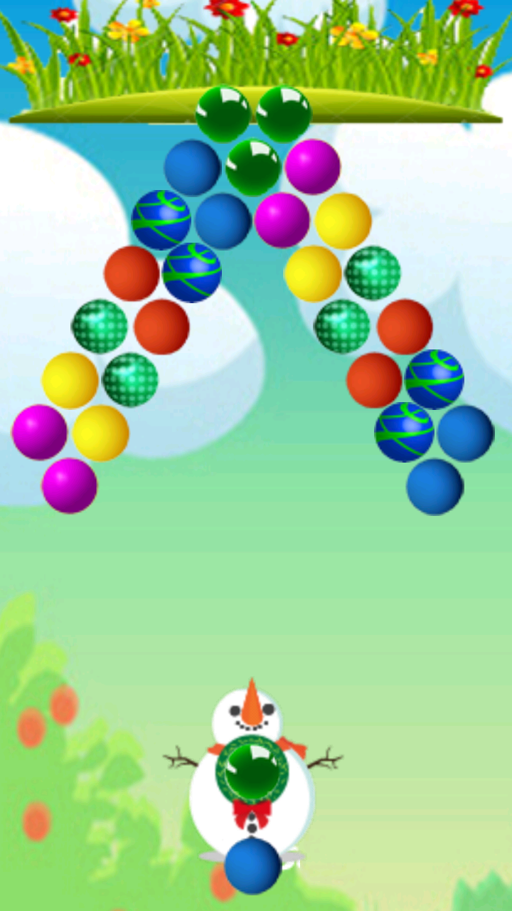游戲的玩法非常簡單, 用手指觸摸屏幕發(fā)射泡泡球,通過正下方的箭頭來發(fā)射泡泡當射擊中三個或更多同顏色的泡泡時,泡泡將消除。
