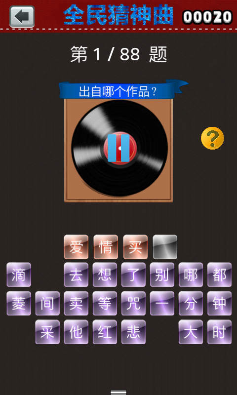 全民猜神曲是一款休閑手機(jī)游戲,無(wú)論是占據(jù)各大首頁(yè)的火熱神曲,還是搞笑神器的耍寶神器,游戲都將收錄其中作為關(guān)卡,玩家要做的就是仔細(xì)傾聽(tīng)?zhēng)酌腌姷母枨?,然后在組合下方的字成正確的歌曲名過(guò)關(guān),想看看自己是不是娛樂(lè)達(dá)人,一猜便知。