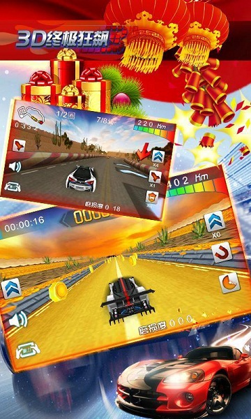 《3D終極狂飆3》是一款華麗的賽車競速游戲!延續(xù)超小的體積和炫酷的3D引擎!加入360度的3D真實名車體驗極度瘋狂!融合了流行而火爆的改裝車競速文化,滿足玩家個性需求!真實的漂移、加速特效和動態(tài)模糊,逼真的畫質(zhì),讓您身臨其境標準、挑戰(zhàn)、生存等賽車模式提升,更加真實和透徹的感受。