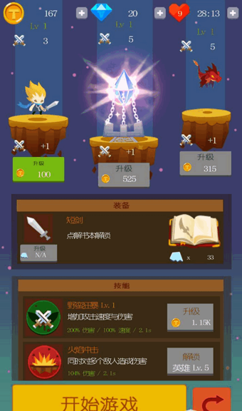 《點(diǎn)擊英雄:戰(zhàn)爭(zhēng)號(hào)角》漢化版是一款豎版動(dòng)作游戲,游戲以簡(jiǎn)單的點(diǎn)觸式進(jìn)行攻擊闖關(guān),簡(jiǎn)單的玩法,勇士與魔鬼的背景,都是比較不錯(cuò)的。《點(diǎn)擊英雄:戰(zhàn)爭(zhēng)號(hào)角》漢化版是一款由TapandClickerStudio開發(fā)的動(dòng)作游戲。游戲講述了魔鬼被密封在世界各地的晶體里面,玩家需要幫助英雄來(lái)保護(hù)魔法水晶,通過(guò)點(diǎn)擊屏幕來(lái)?yè)魵⒐治?防止怪物將其毀滅,怪物們想去破壞水晶,移動(dòng)你的角色摧毀怪物,不要讓他們靠近水晶。獲得經(jīng)驗(yàn)提升等級(jí),解鎖更多武器。