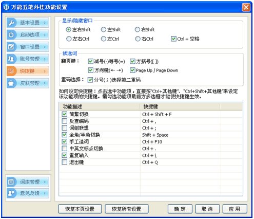 用戶凡是輸入過一次的重碼字或詞,萬能五筆均會(huì)自動(dòng)記憶,用戶下一次再輸入該字或詞,萬能五筆會(huì)把該字或詞自動(dòng)調(diào)頻在第一位,用戶只需直接敲空格鍵即可上屏,無需再選數(shù)字。這對(duì)用戶經(jīng)常輸入一些特定的字詞非常有幫助,而且萬能五筆的智能記憶會(huì)根據(jù)用戶的使用習(xí)慣自動(dòng)替換、不斷更新。同時(shí)還能夠連續(xù)重復(fù)輸入最近上屏的字詞,只要按ctrl+\即可。