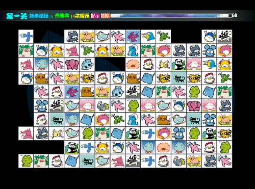點(diǎn)擊“開始游戲”即可。使用鼠標(biāo)操作游戲,第一次點(diǎn)擊一個(gè)圖案,則此圖案被提起,這時(shí)此圖案被選定,此時(shí)如果再次點(diǎn)擊此圖案則取消選定,如果不重復(fù)點(diǎn)擊該圖案,而是找到另一個(gè)與此圖案完全相同的圖案并點(diǎn)擊,并且兩個(gè)圖案之間的連接線轉(zhuǎn)彎在不超過2次的情況下,則這對(duì)圖案連接成功,并消失。