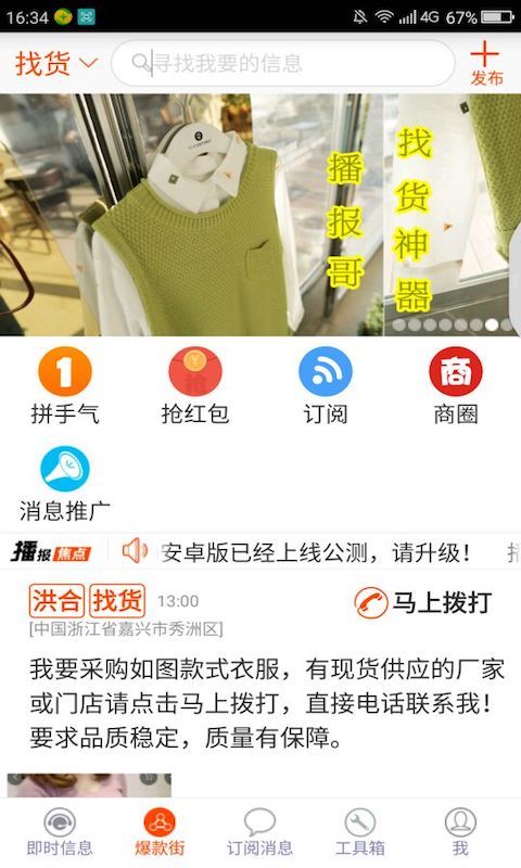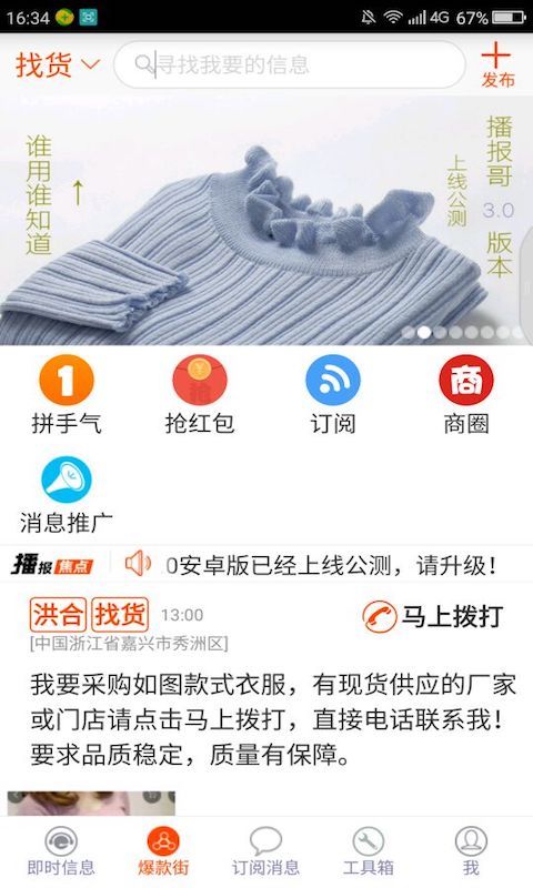 毛衫、服裝及相關(guān)產(chǎn)業(yè)鏈上下游從業(yè)人員及周邊服務(wù)配套從業(yè)人員地域分布廣,產(chǎn)業(yè)圈需求信息與緊俏供應(yīng)信息不暢,常導(dǎo)致采購商在找貨過程中費(fèi)時(shí)又費(fèi)力、雇主招工人、招加工過程中“一將難求”,供應(yīng)商無法及時(shí)找到有效客戶等問題。傳統(tǒng)的“商圈”在“檢索”有效信息時(shí)往往顯得無能為力,挨家挨戶打聽不僅麻煩、即時(shí)性差,容易讓人反感,并且不能實(shí)時(shí)形成真實(shí)的產(chǎn)業(yè)鏈數(shù)據(jù)。因此本系統(tǒng)的目的就是要為毛衫、服裝及相關(guān)產(chǎn)業(yè)鏈上下游從業(yè)人員及周邊服務(wù)配套從業(yè)人員解決信息不暢、溝通不及時(shí)的問題。【更新日志】