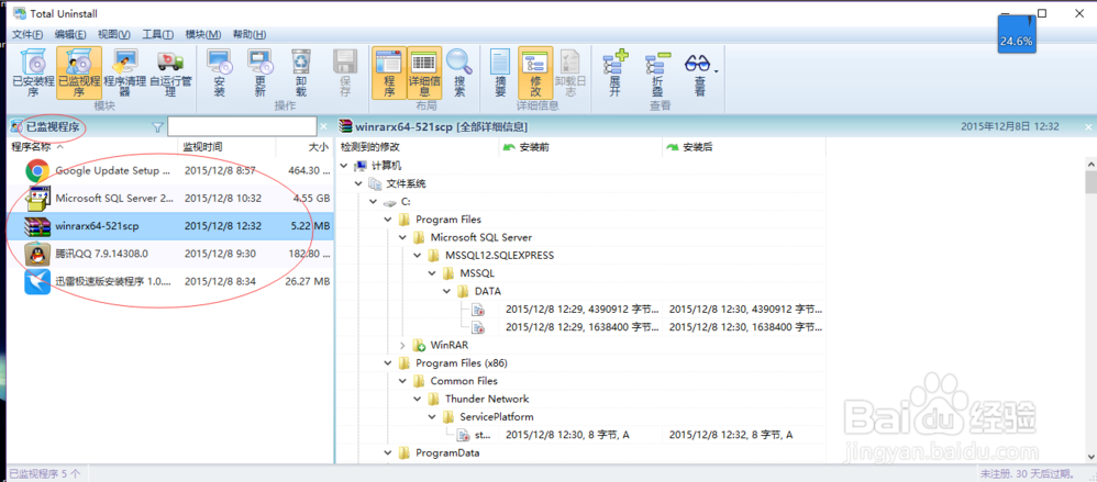 1、精確分析已安裝程序使用 Total Uninstall 的“已安裝程序”模塊可以分析已安裝程序并創(chuàng)建安裝日志。這可用于執(zhí)行徹底的程序卸載,即使沒有自身卸載程序的幫助。