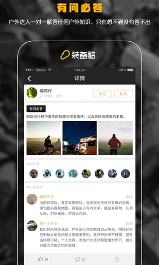 眾測:登山鞋,沖鋒衣,帳篷,睡袋,戶外背包,登山杖,越野跑鞋,頭燈,跑步,騎行,徒步,滑雪各類戶外旅行方式裝備等您免費(fèi)來拿。發(fā)現(xiàn):你可以在這里發(fā)帖子曬生活曬裝備,發(fā)現(xiàn)有價(jià)值的戶外線路,不懂的問題一問就知道答案。來裝備酷,發(fā)現(xiàn)最接地氣的戶外社區(qū),隨時(shí)隨地約伴找朋友。